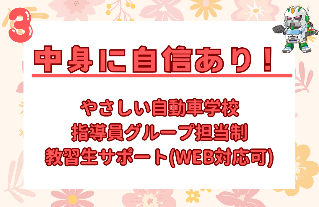 ユタカ豊川校では、入校時・検定時・卒業時に皆様からフィードバックをいただき「やさしい自動車学校」を合言葉に日々改善に取り組んでいます!また、相談するのが苦手な方でも、オンラインで相談できる「教習生相談フォーム」を用意しています!ぜひ色々な自動車学校と比較してみてください!